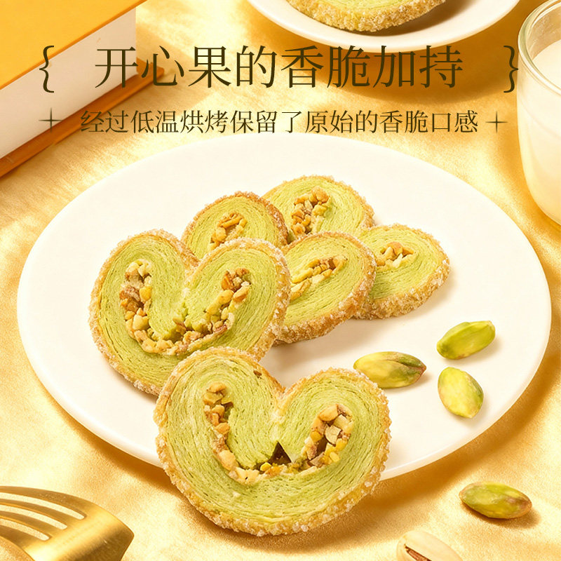 开心果蝴蝶酥千层酥爱心饼干儿童糕点年货坚果零食解馋好吃的追剧