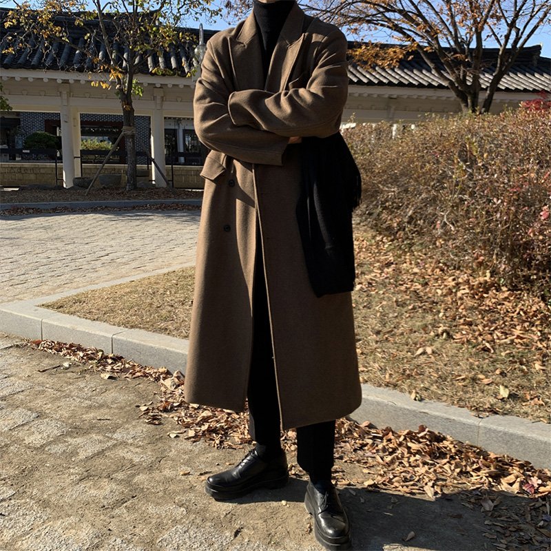 碧舍秋冬青年过膝双排扣毛呢大衣