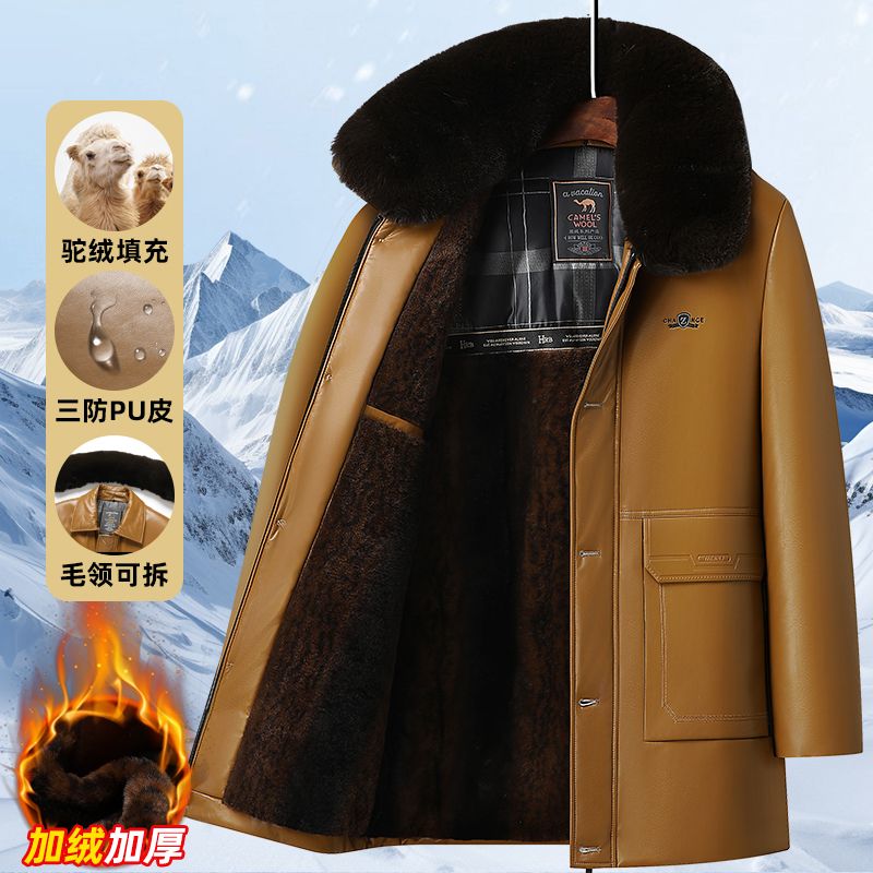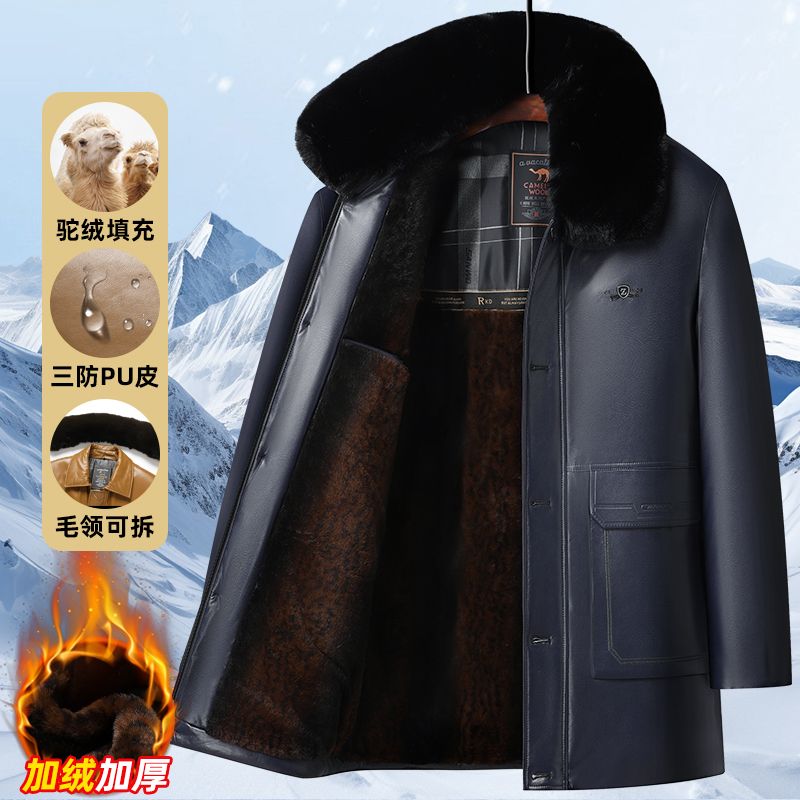 冬季中老年棉衣男加厚PU皮棉袄男冬装外套中年爸爸装宽松加绒棉服