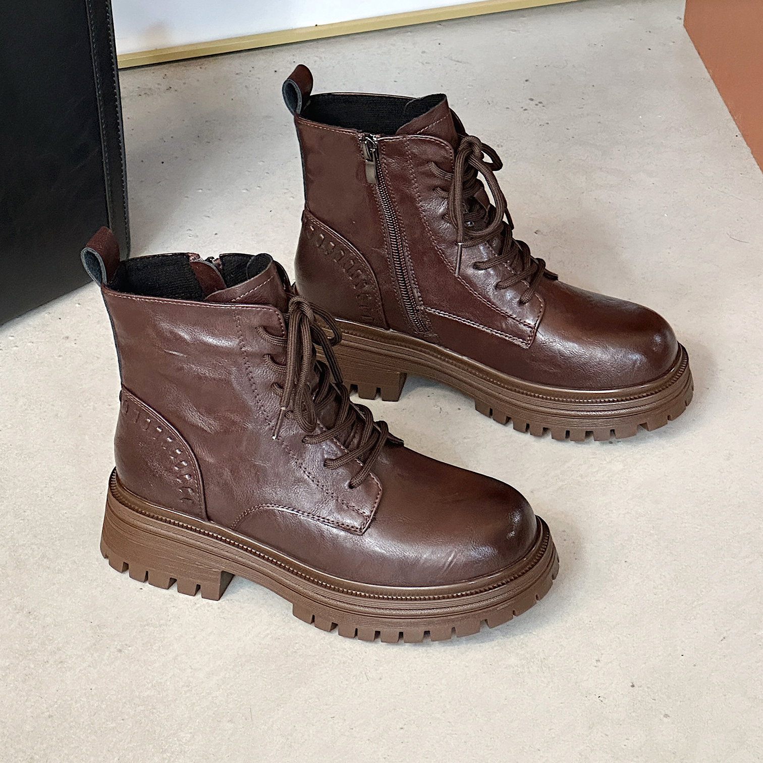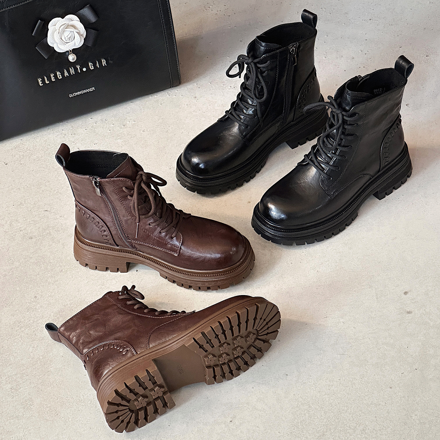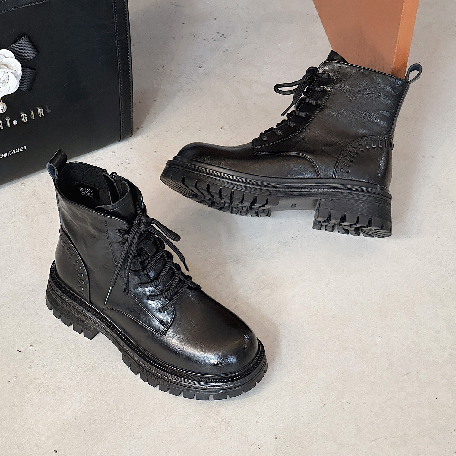 厚底马丁靴女2025新款秋冬百搭显脚小英伦风系带短靴帅气机车靴子