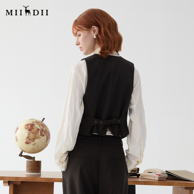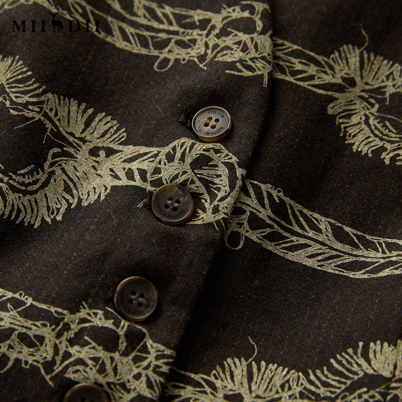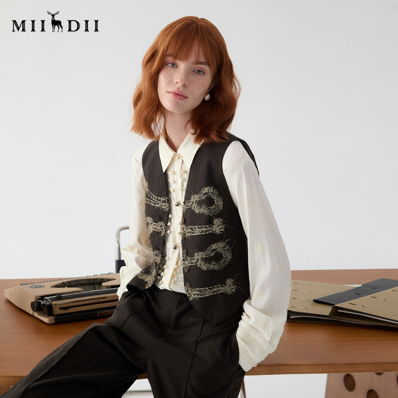 谜底西装马甲女2025春新品复古手绘绳结扣印花修身马夹251MM0079