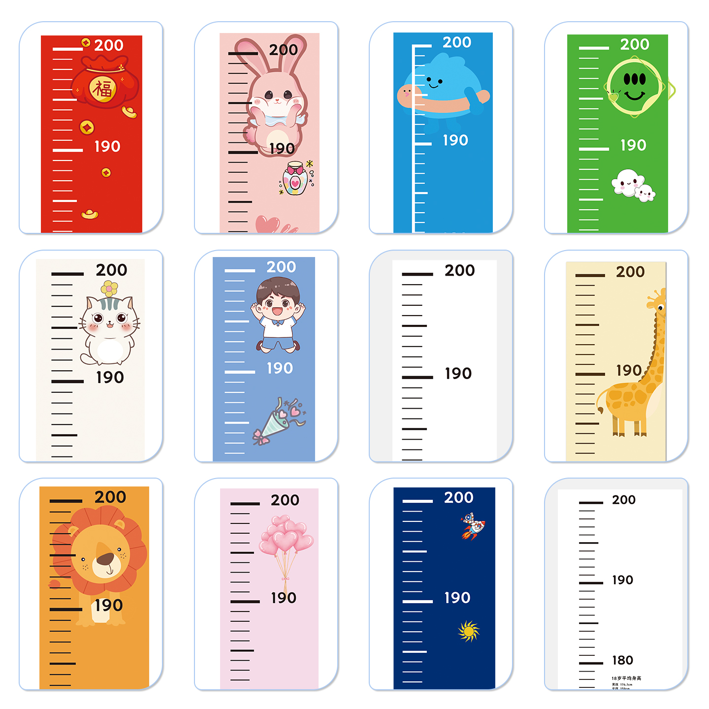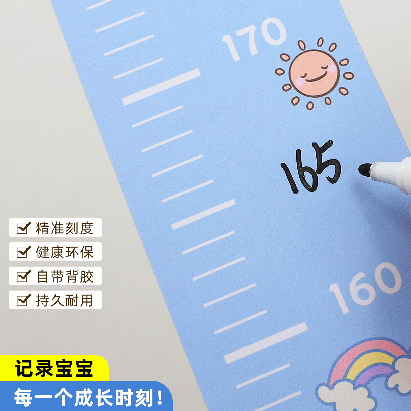 儿童身高测量尺宝宝身高贴墙面装饰身高贴纸一整张身高墙贴可移除