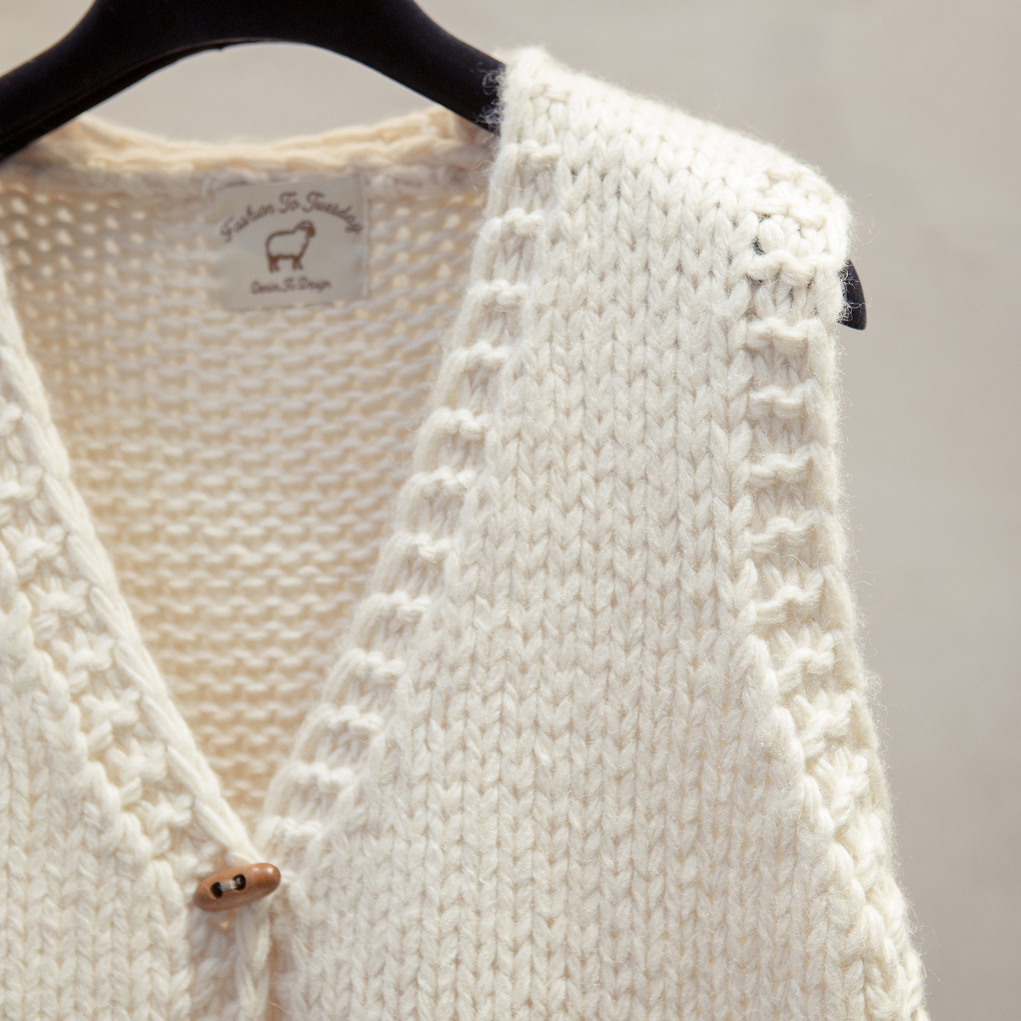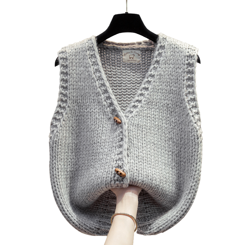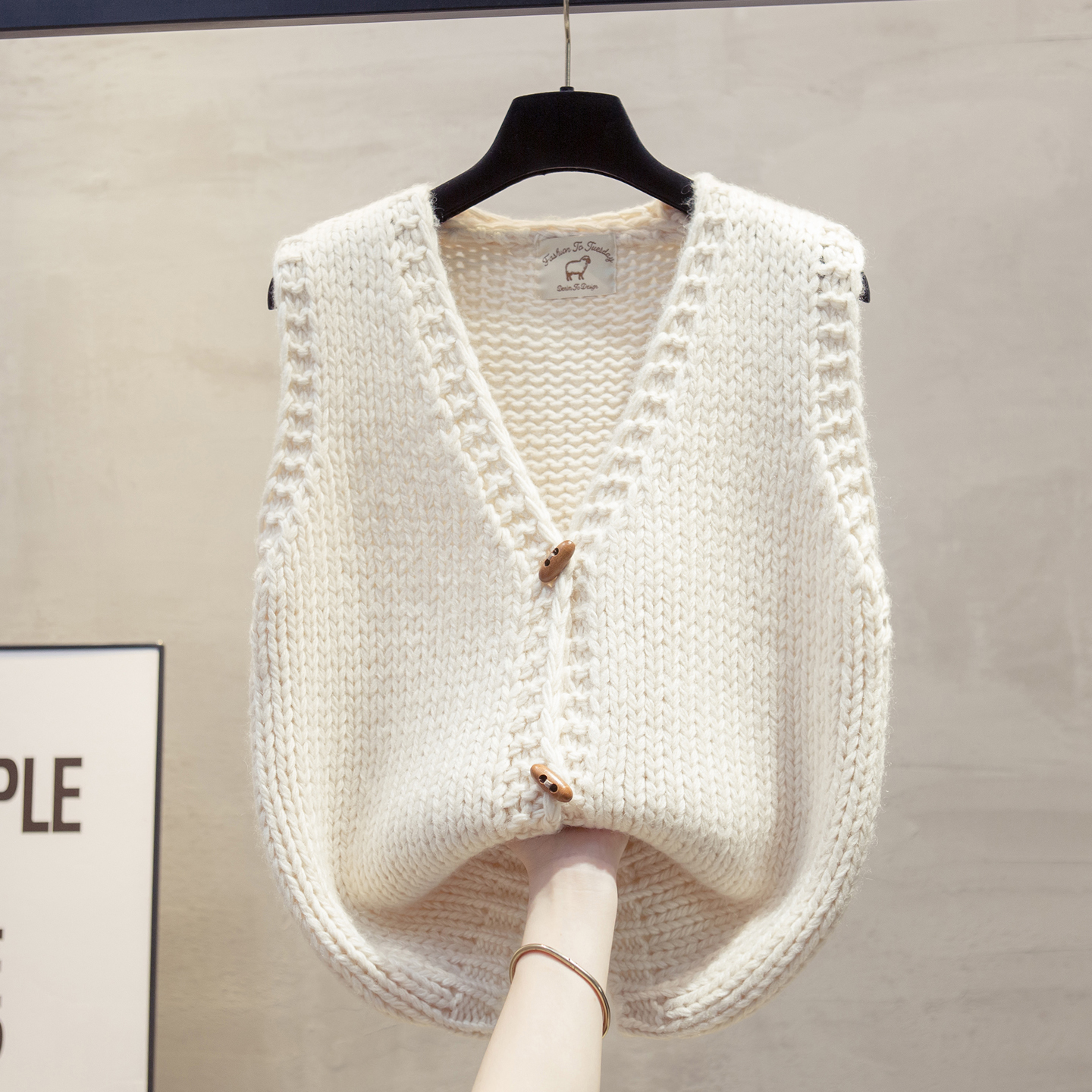 粗针v领开衫针织马甲背心女2025秋冬新款宽松马夹叠穿毛衣坎肩潮
