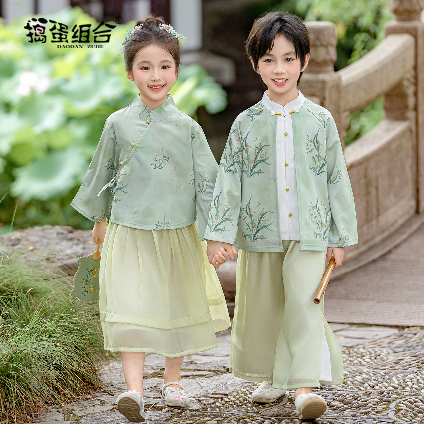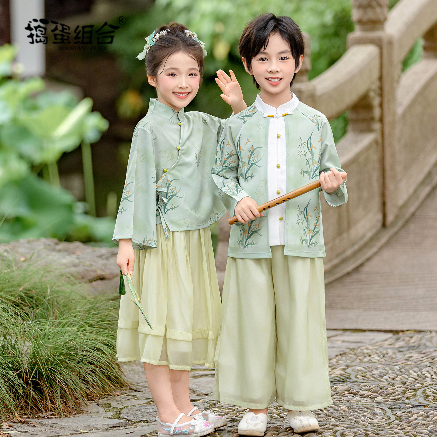 男童汉服秋装2025新款新中式亲子装女童古风古装幼儿园中秋演出服