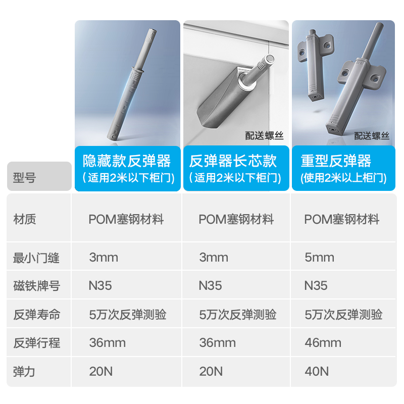 悍高衣橱柜门强磁自反弹器免装拉手抽屉隐形门碰珠按弹器弹簧开门