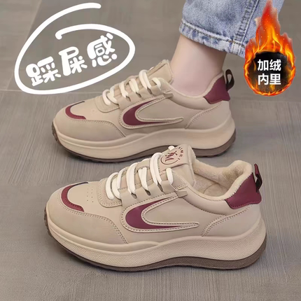 意尔康品牌踩屎感厚底加绒运动鞋女冬季保暖棉鞋学生百搭阿甘休闲