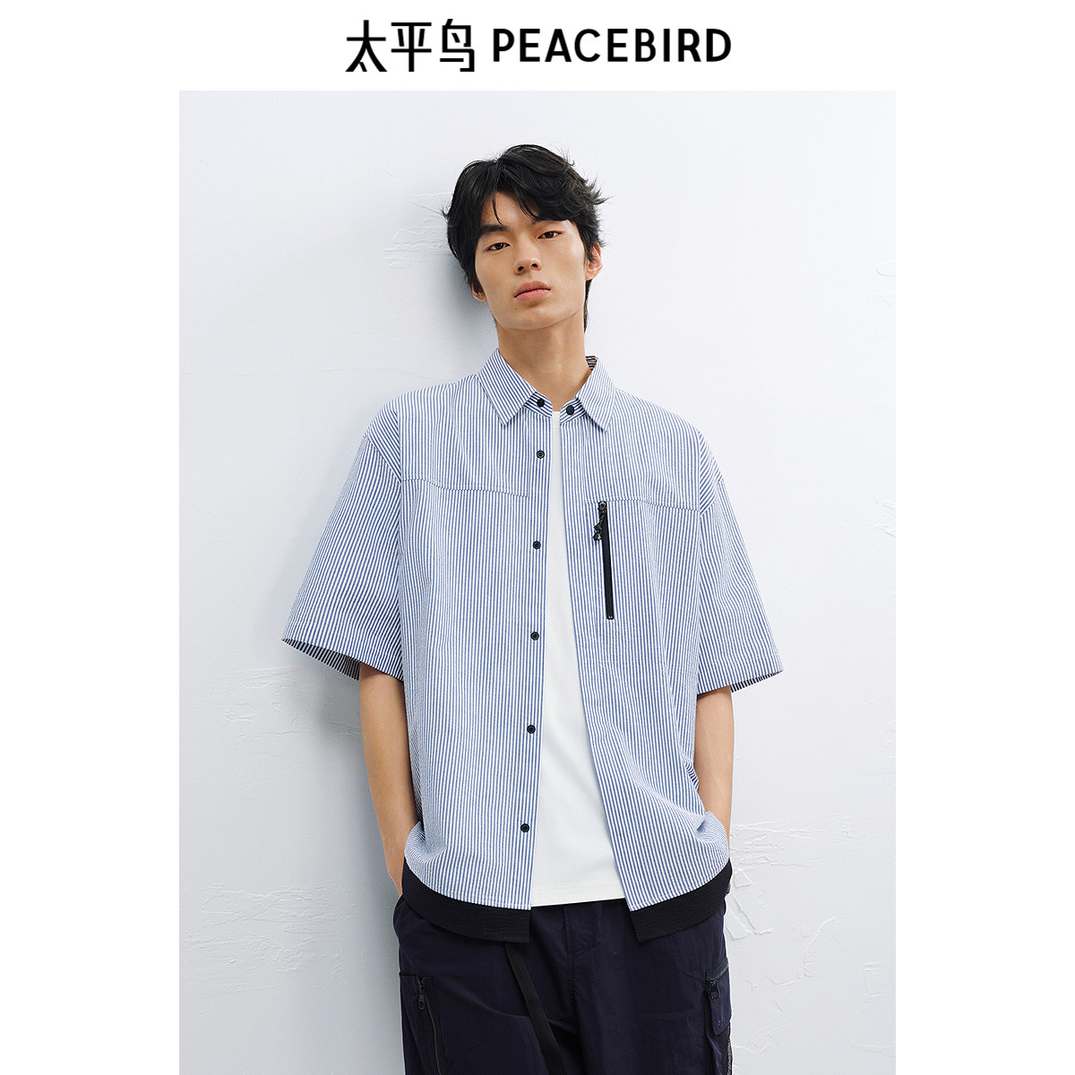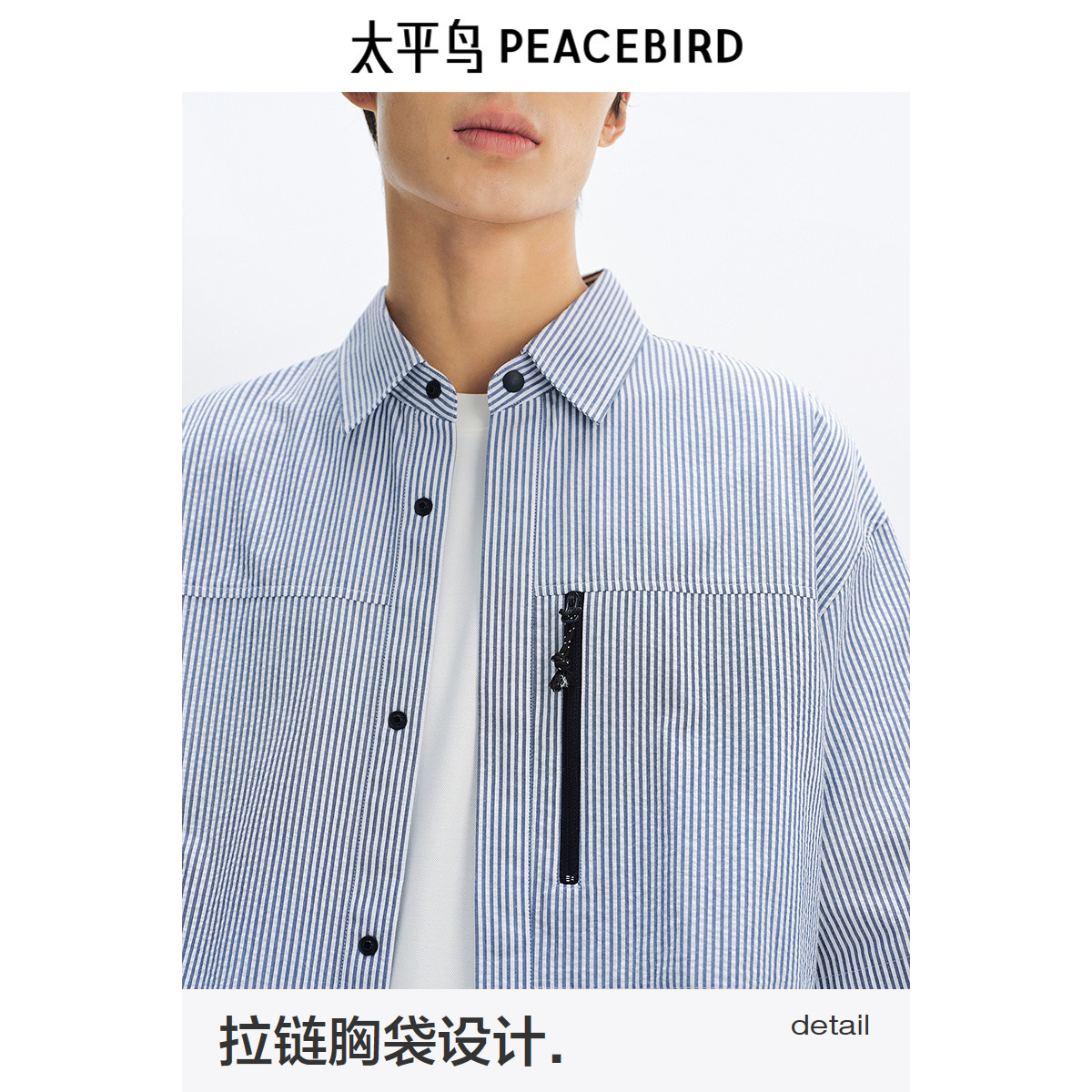 太平鸟男装 休闲衬衫2026夏季新款外穿式衬衫假两件阔版男士衬衣