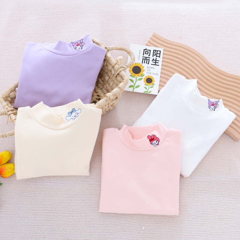 女童纯棉弹力中领打底衫 25春秋装儿童小女孩女宝宝半高领长袖T恤