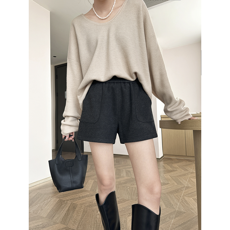 醋酸毛呢短裤女秋冬2025新款高腰外穿靴裤加厚休闲a字羊毛阔腿裤