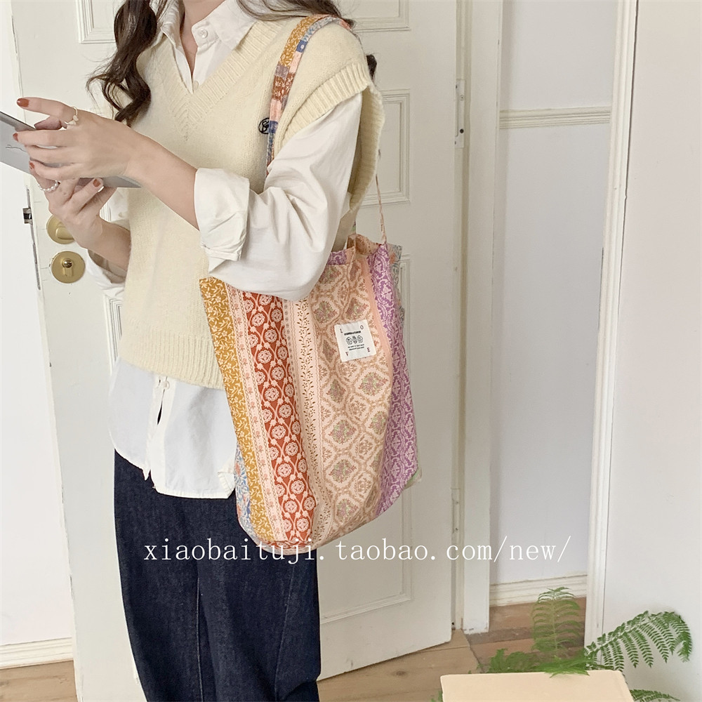 小白兔几 帆布通勤2023复古碎花夏季上班单肩包布袋大容量腋下包