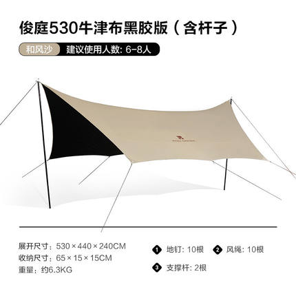 牧高笛黑胶天幕户外露营大空间防雨防晒蝶形天幕俊庭530牛津布