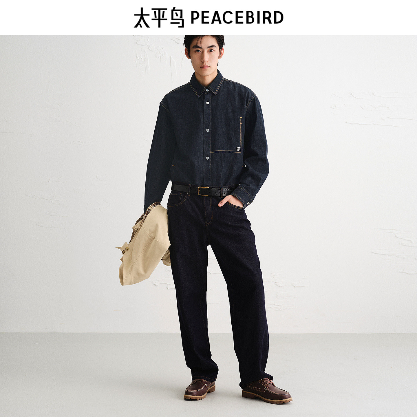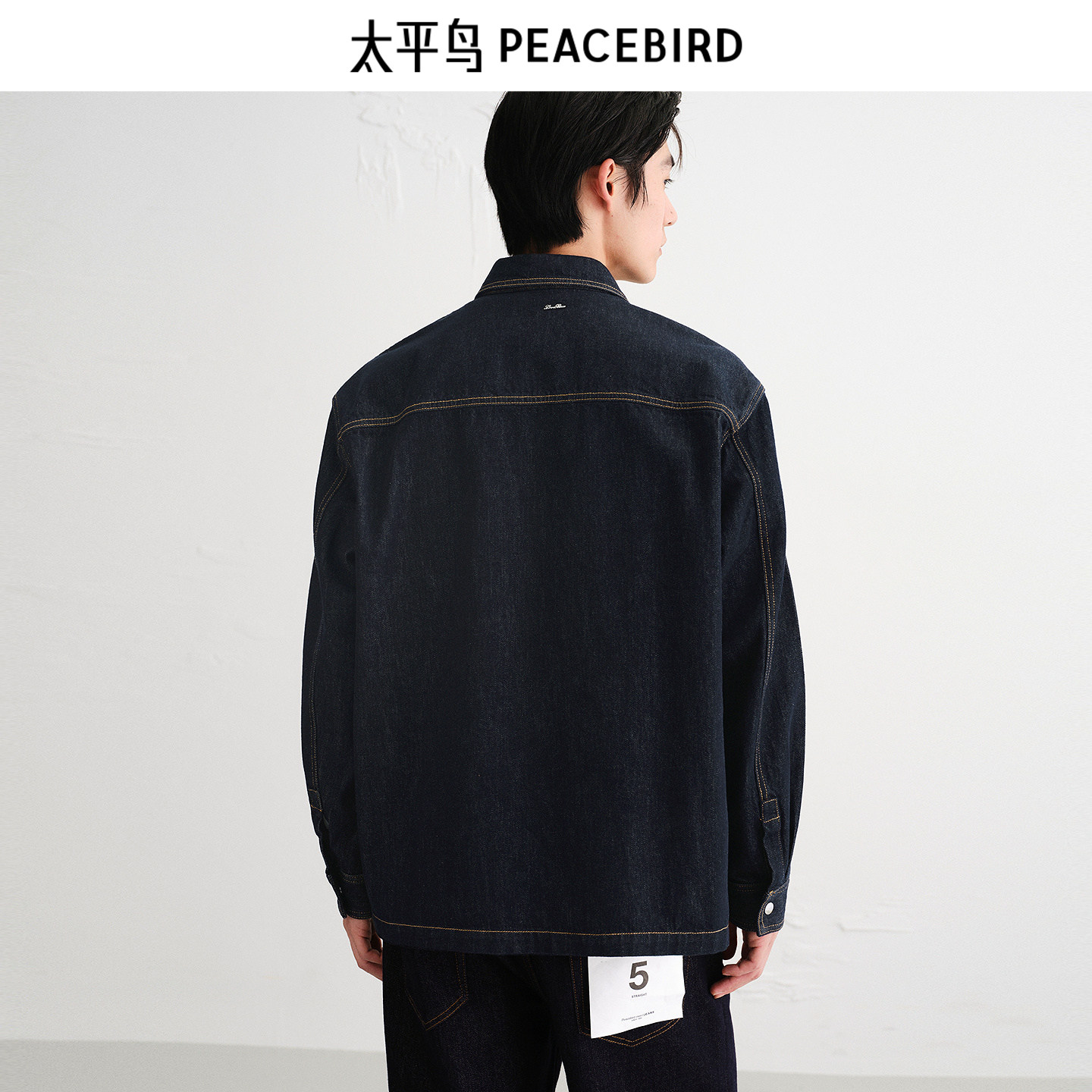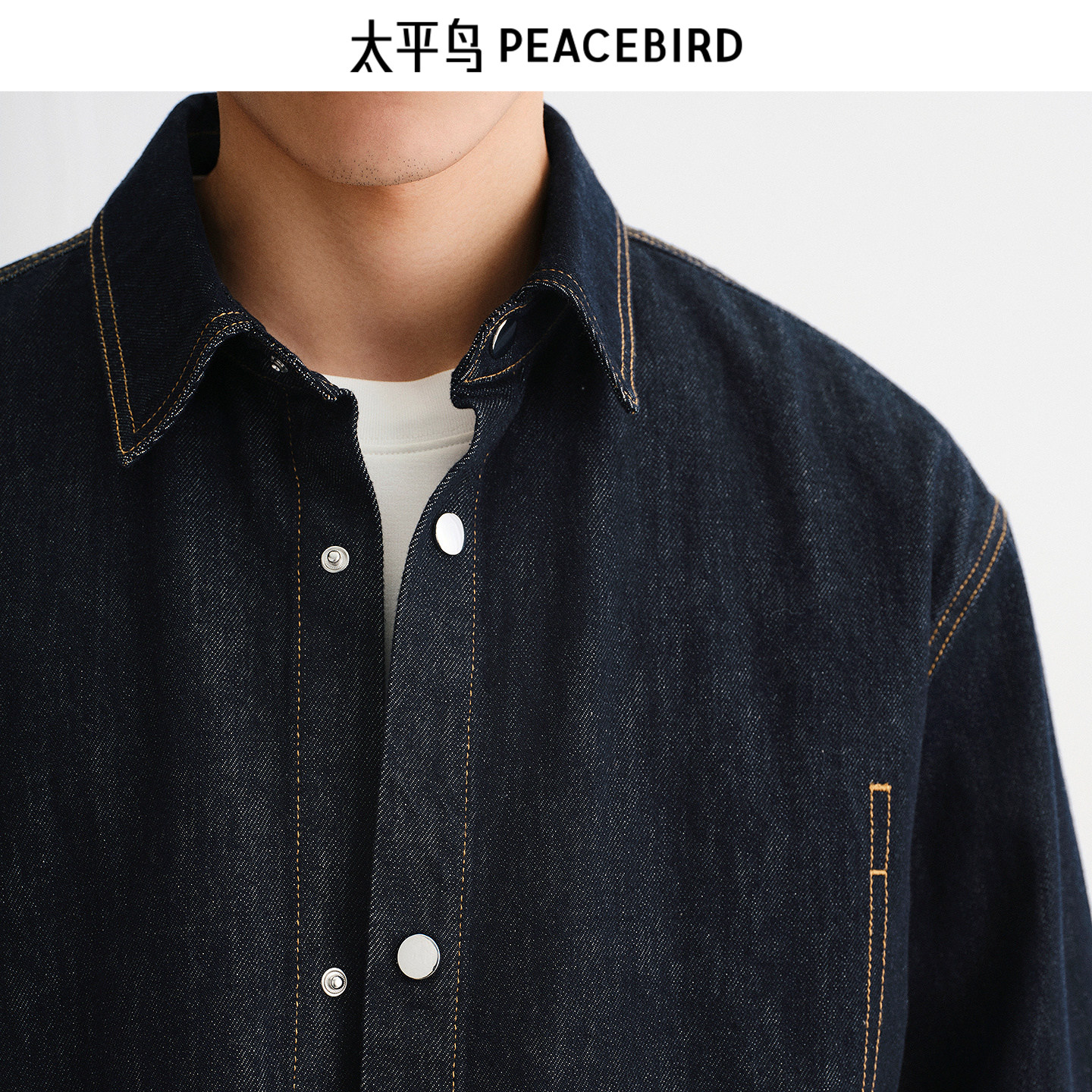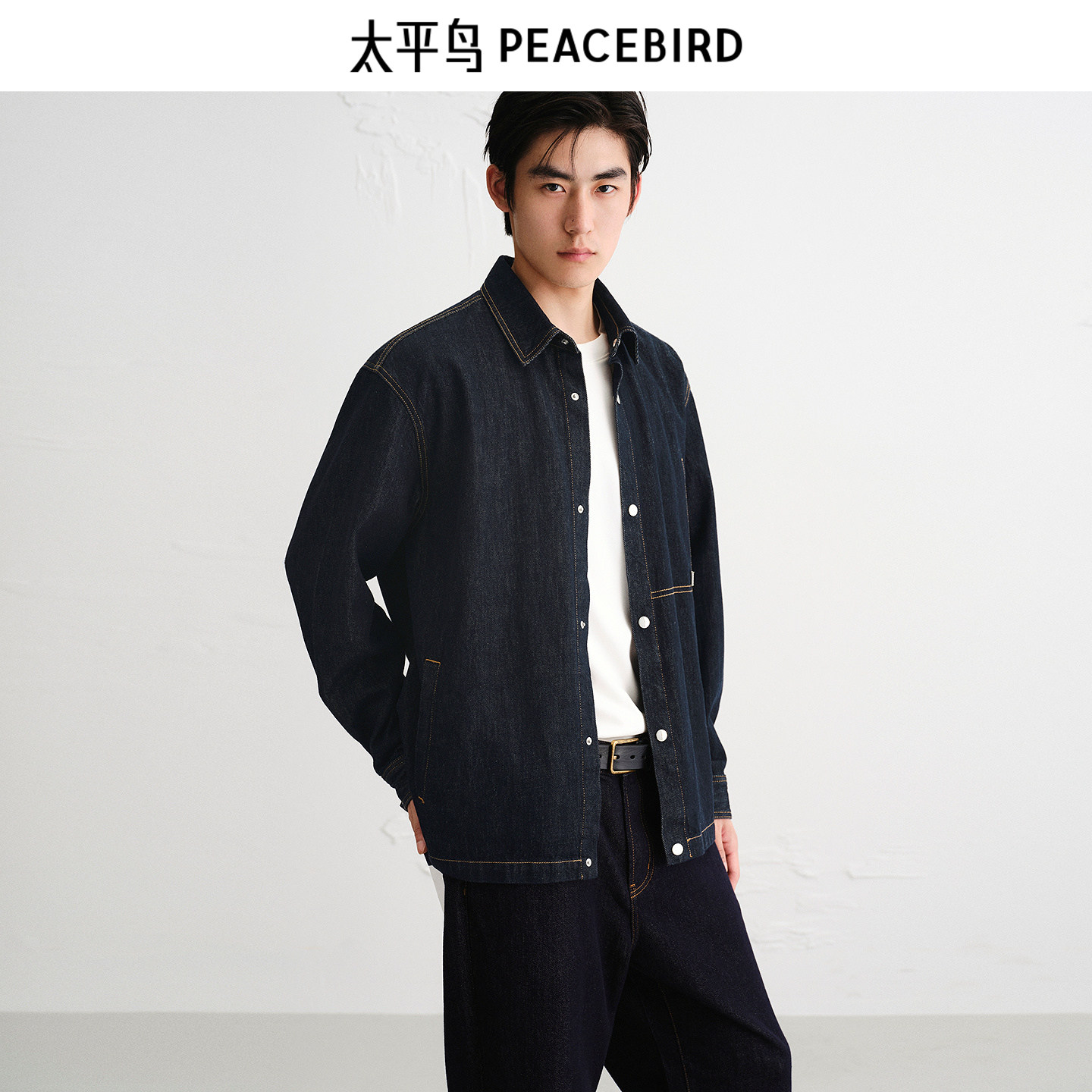 太平鸟男装 休闲衬衫2025秋季牛仔衬衫明线撞色时尚男士衬衫