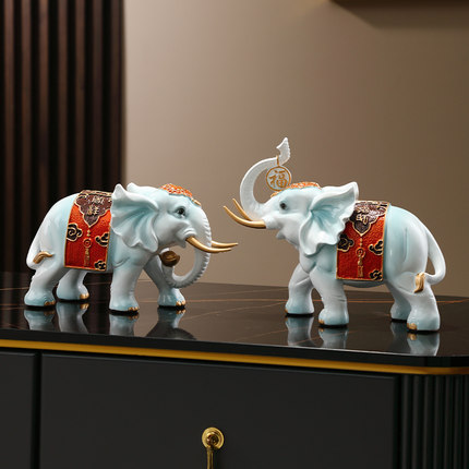 现代吉祥如意招财大象桌面摆件一对客厅电视柜装饰品乔迁新居礼品