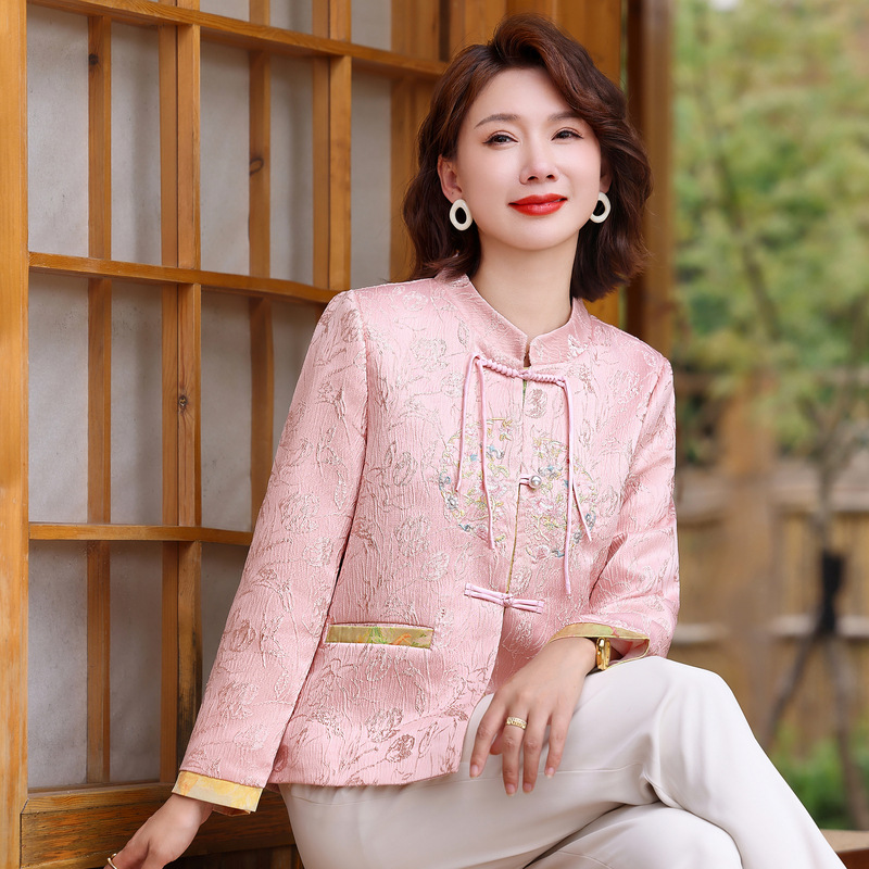 妈妈装新中式国风刺绣外套春秋季新款中老年女装盘扣衬衫唐装上衣