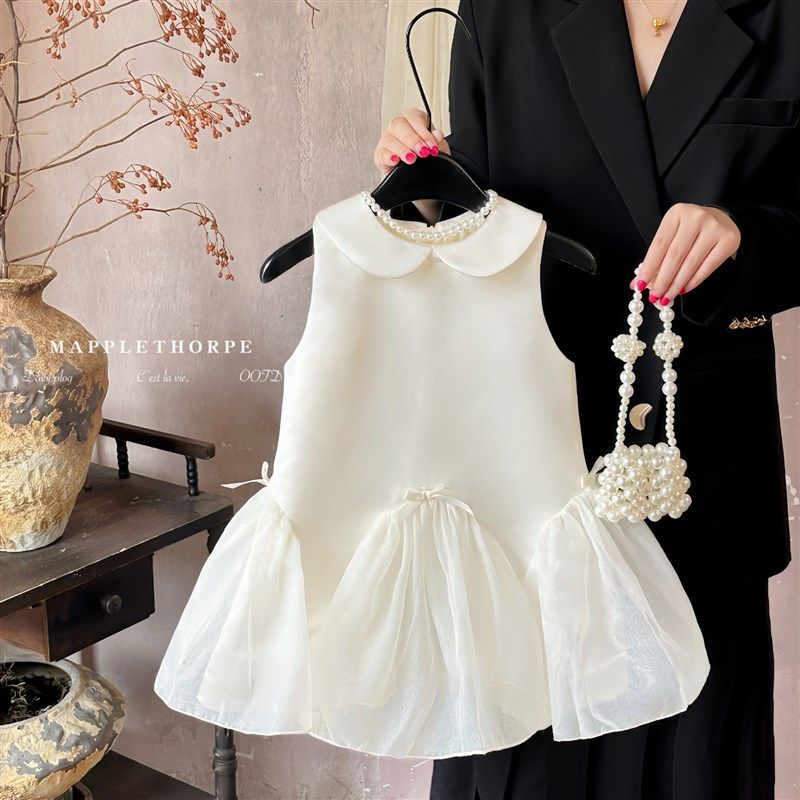 高端女童公主裙夏季2025新款生日礼服裙儿童网纱拼接连衣裙背心裙
