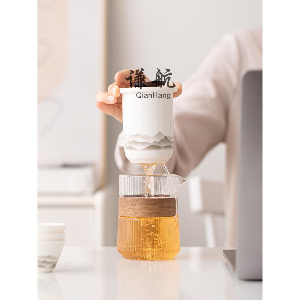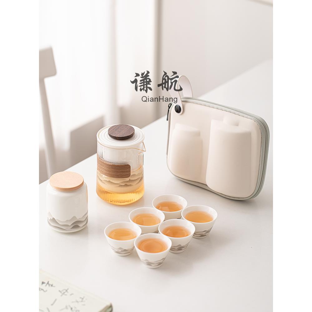 谦航玻璃旅行茶具套装便携式收纳包户外露营泡茶壶快客杯一壶三杯