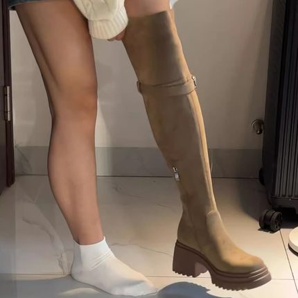 拖沓刘天王弹力显瘦长靴粗高跟西部靴粗高跟过膝长靴34-40大小筒