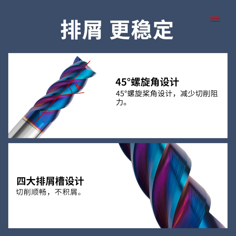 65度4刃硬质合金钨钢铣刀不锈钢CNC数控加工中心专用高硬蓝纳米涂