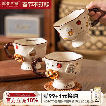 摩登主妇猫和老鼠陶瓷马克杯家用杯子浮雕办公室水杯咖啡杯早餐杯