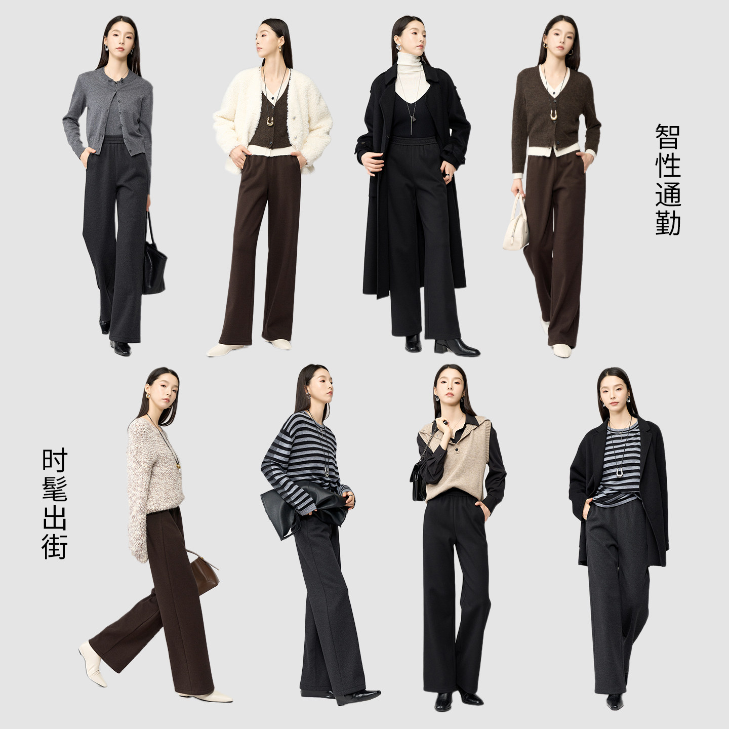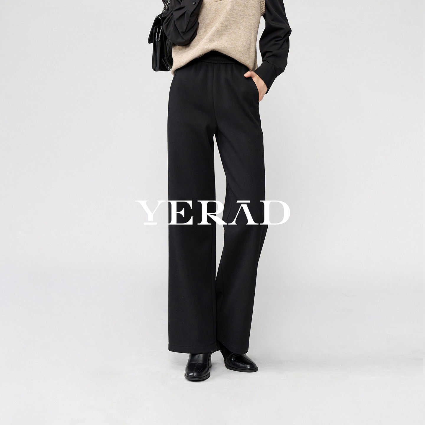 娅丽达牦牛绒阔腿裤女毛呢裤子2025冬新款休闲拖地裤加绒直筒女裤