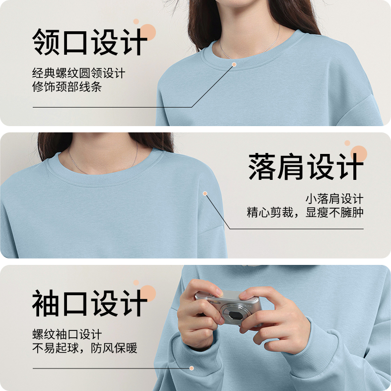 NOB真维斯蓝色国风卫衣外套女2025新款春秋季宽松圆领打底衫上衣
