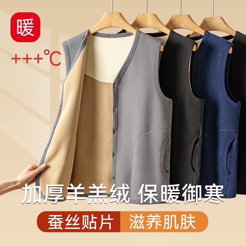 中老年马甲男冬季加绒加厚抓绒老年人棉坎肩爸爸保暖开衫内搭背心
