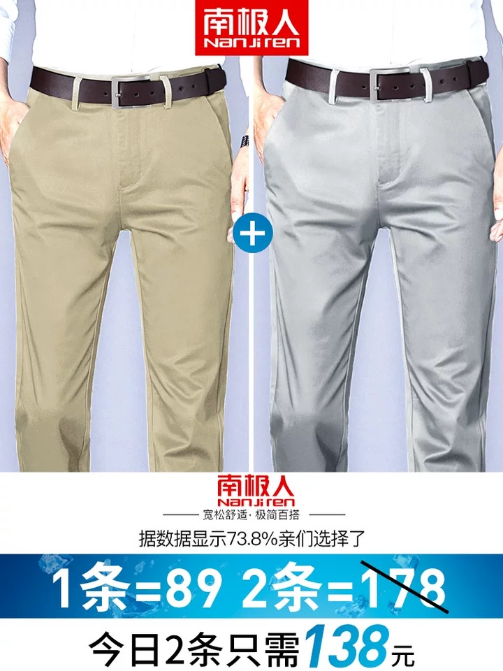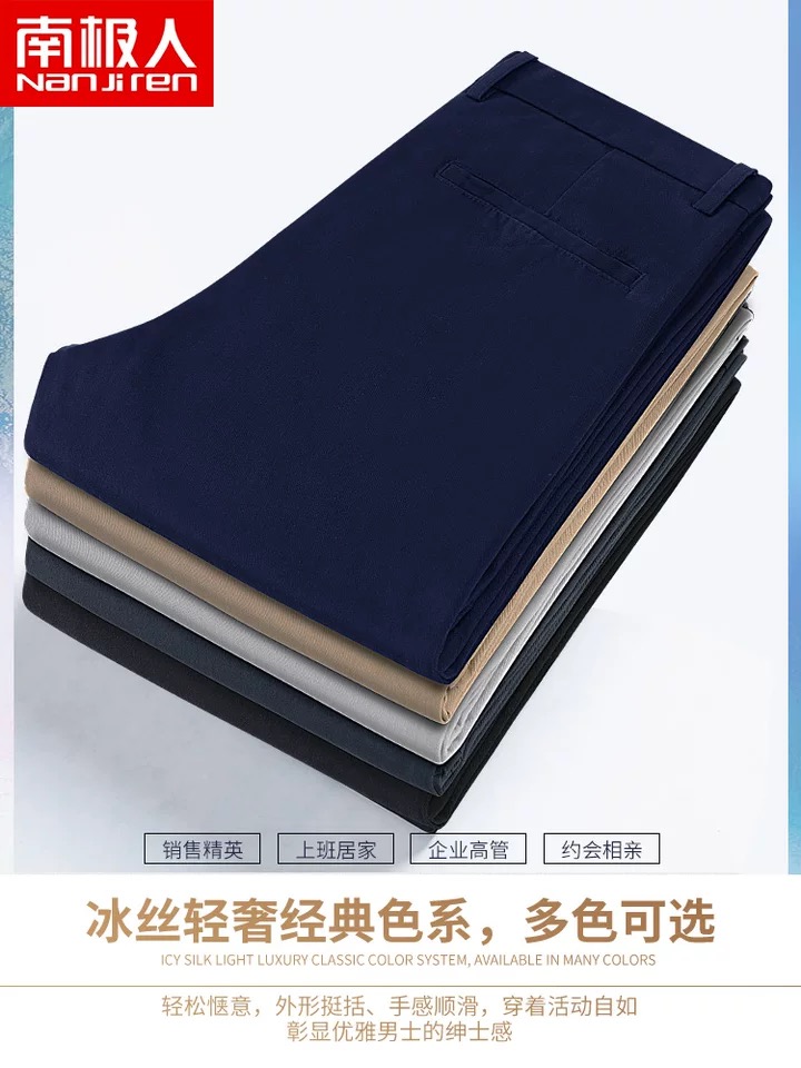 南极人超薄款冰丝男士休闲裤夏季宽松中年百搭商务西裤直筒长裤子