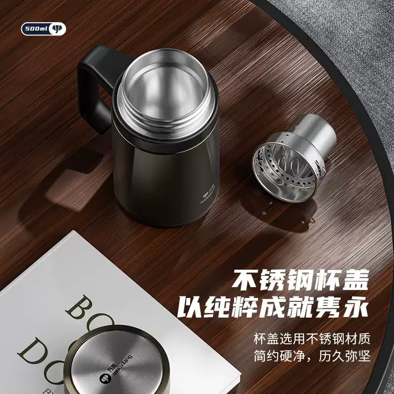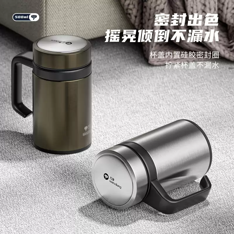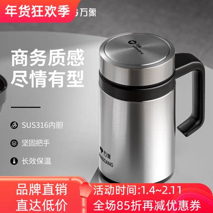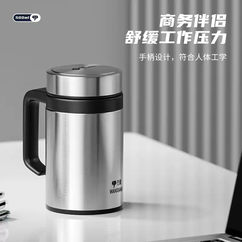 万象不锈钢保温杯大容量把手柄商务办公家用送礼车载便携泡茶水杯