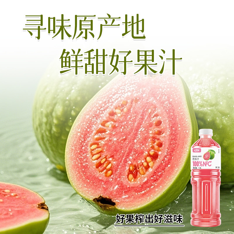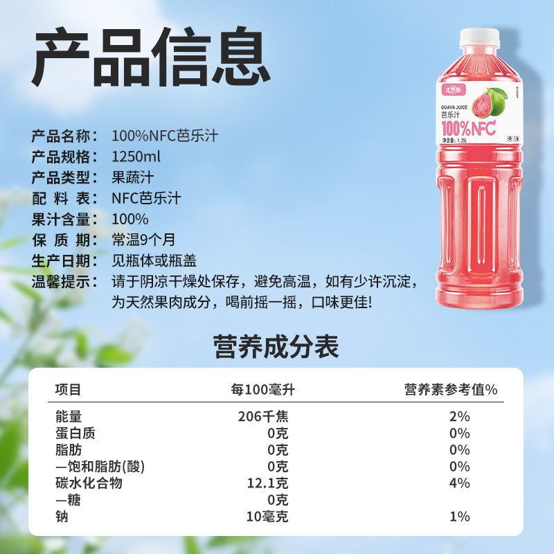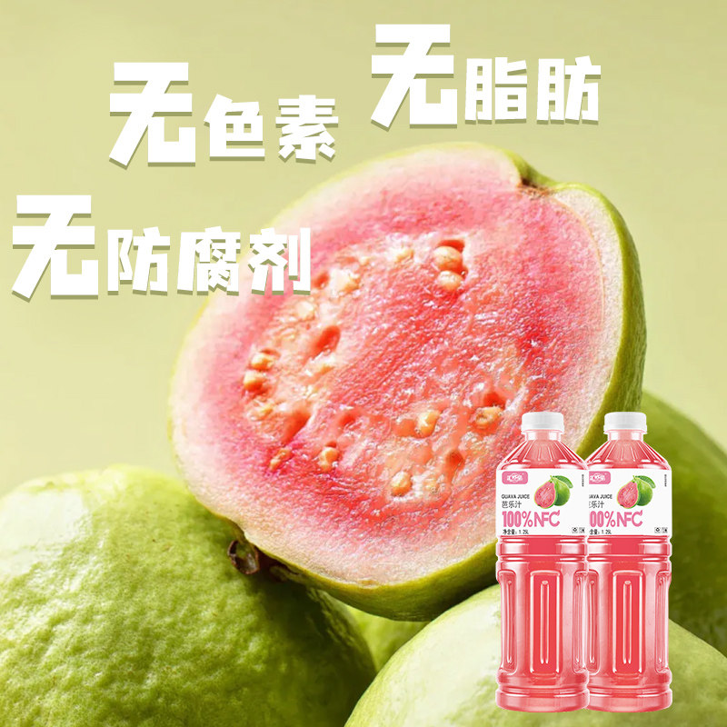 汇哆乐100%芭乐汁1.25L*2大瓶畅饮装nfc果汁好喝无添加果汁饮料