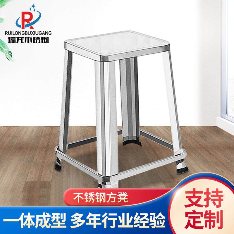 家用简约不锈钢加厚方形凳子餐椅大排档食堂出租屋方加厚不锈钢