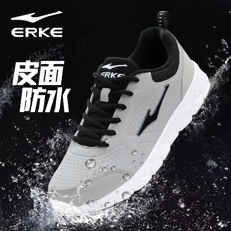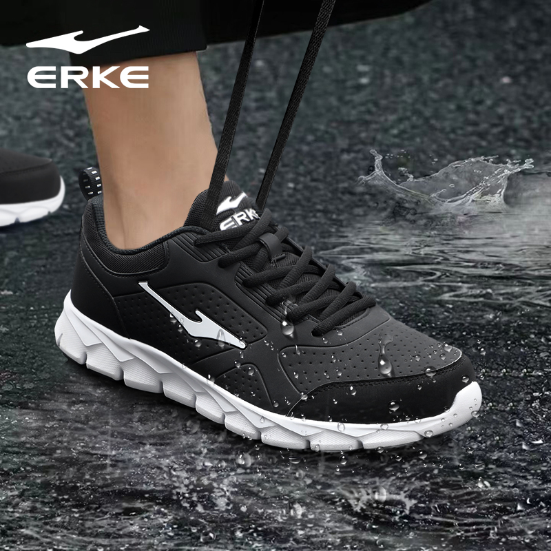 鸿星尔克男鞋夏季新款黑色皮面防水运动鞋轻便软底跑步鞋休闲男鞋