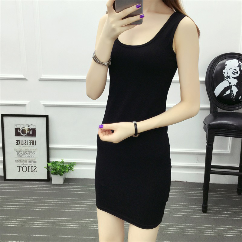 黑色打底连衣裙女夏中长款包臀内搭显瘦外穿无袖大码吊带背心裙
