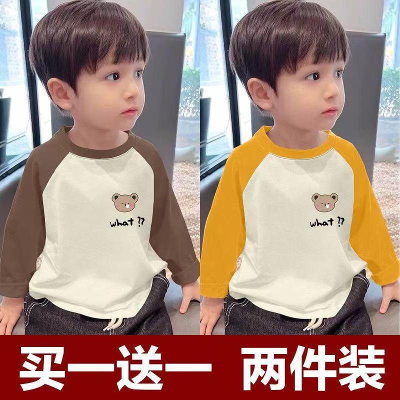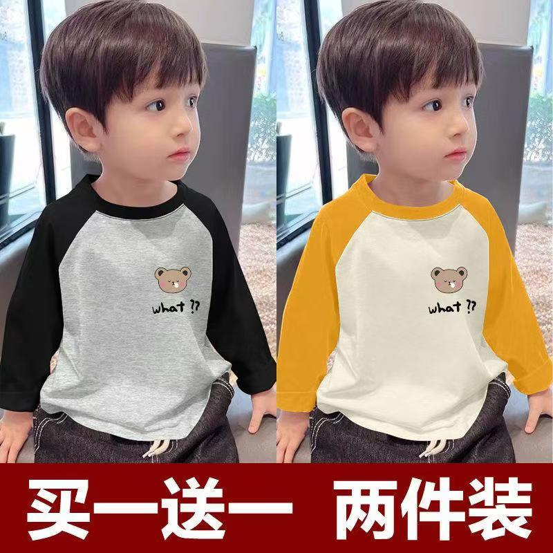 100%纯棉男女童春秋季韩版长袖儿童宝宝卡通插肩打底衫上衣全棉F