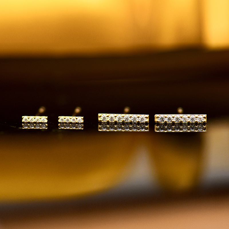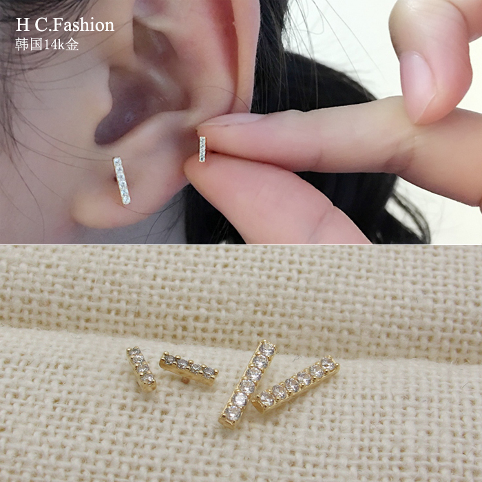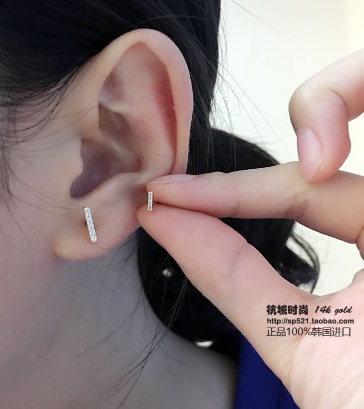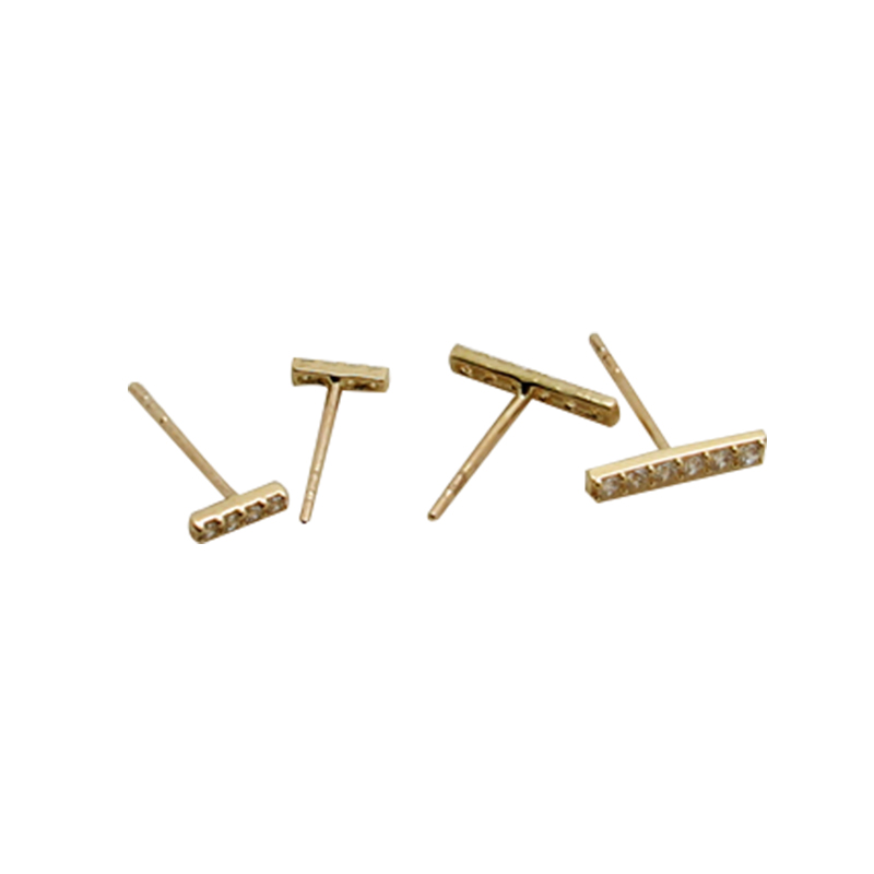 高级韩国流行10K 14K黄金耳钉 一字锆石耳钉极简日韩设计师新款潮