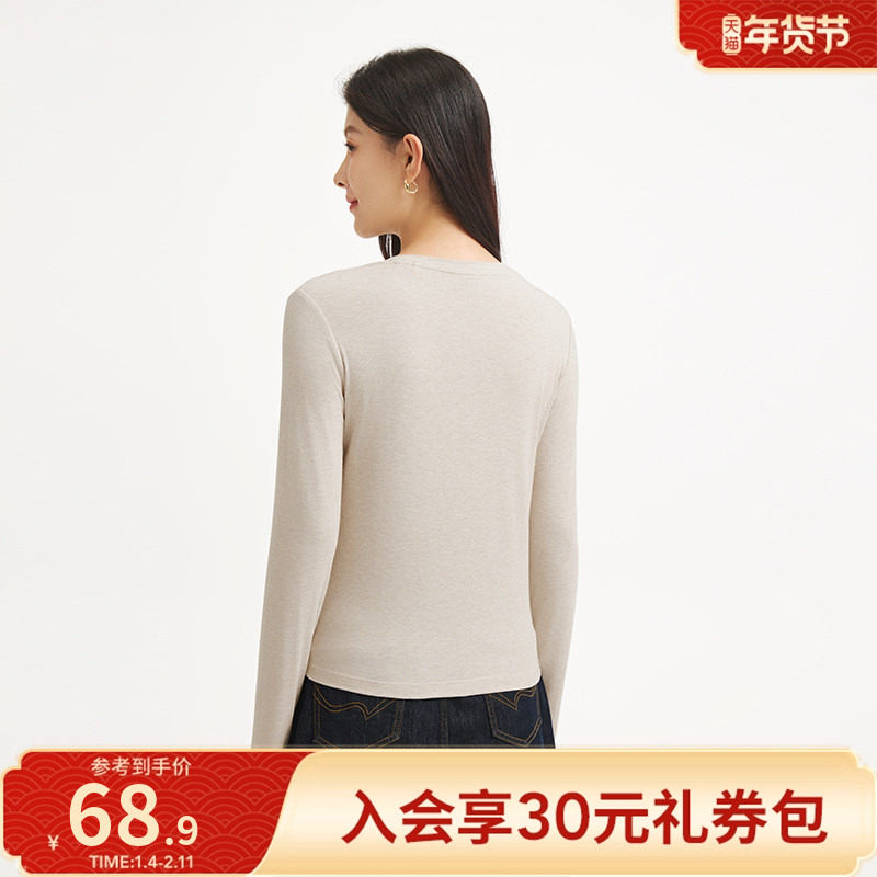 热风2025年秋季新款女士圆领修身长袖T恤无感标签好穿舒适