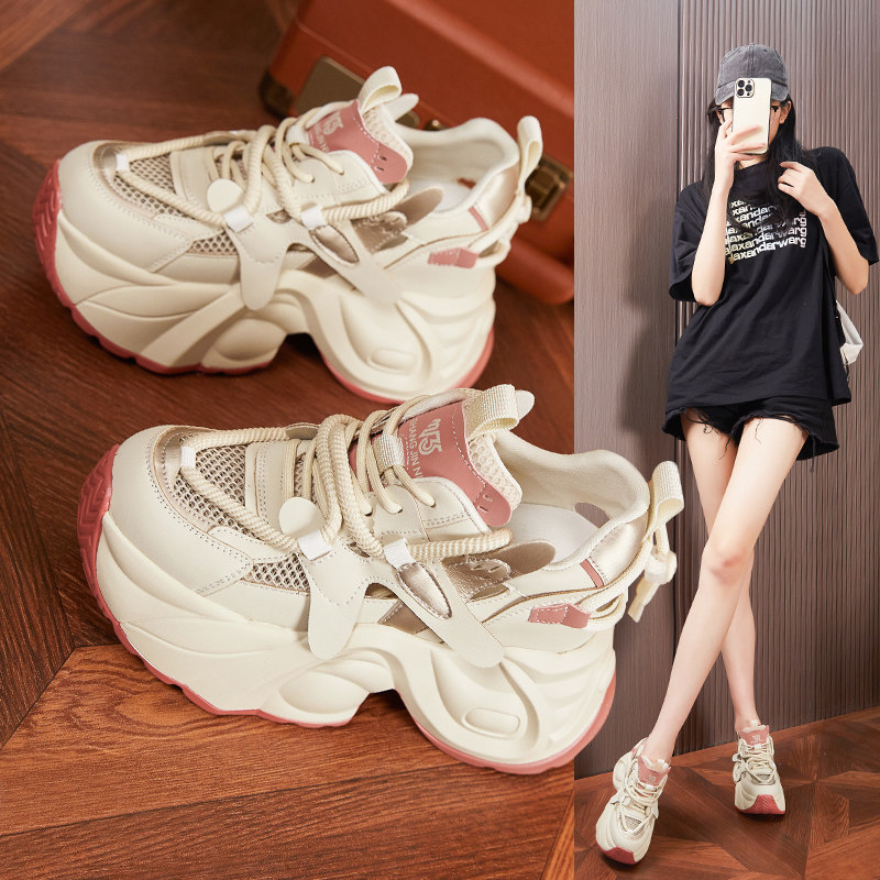 ZFCQ厚底内增高老爹鞋女款真皮2026春夏新款单里高跟软底休闲运动