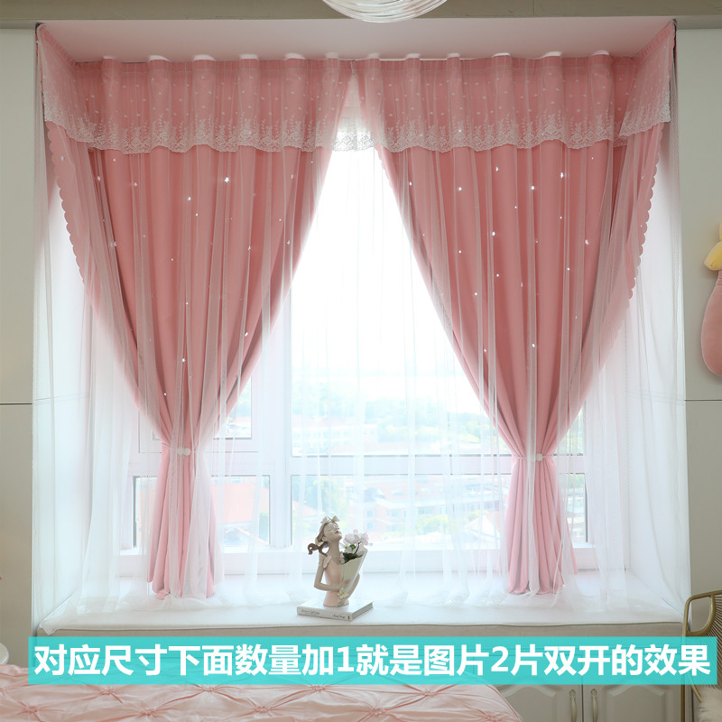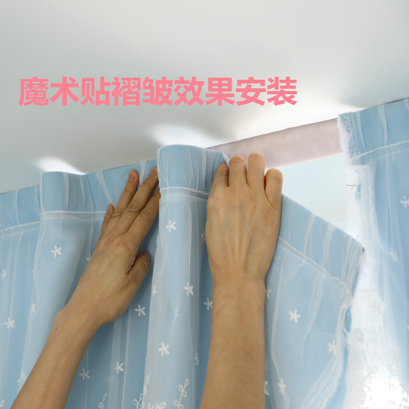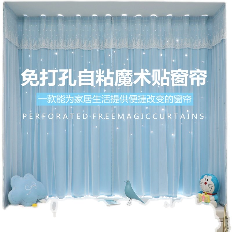 魔术贴窗帘免打孔安装自粘式拐角飘窗窗帘双层带纱卧室全遮光简约