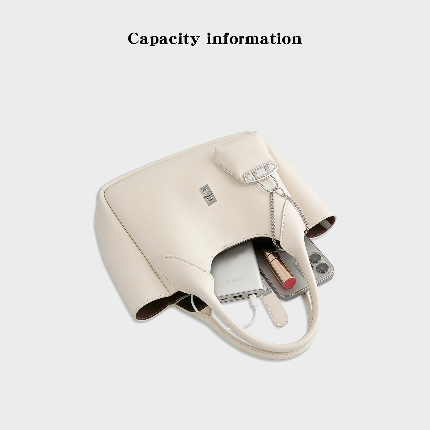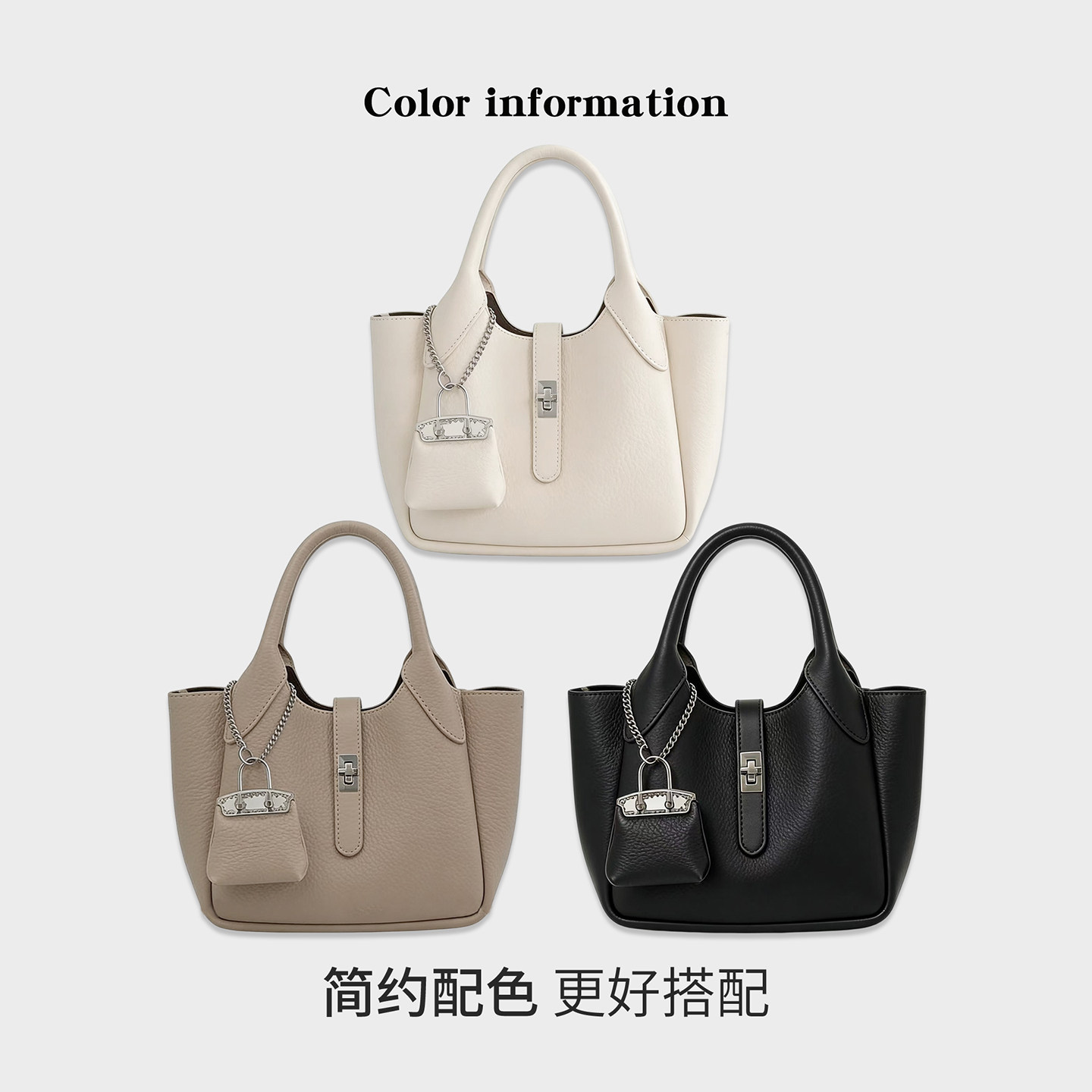 CKKUI 头层真皮荔枝纹包包2026新款水桶包高级感通勤单肩包托特包