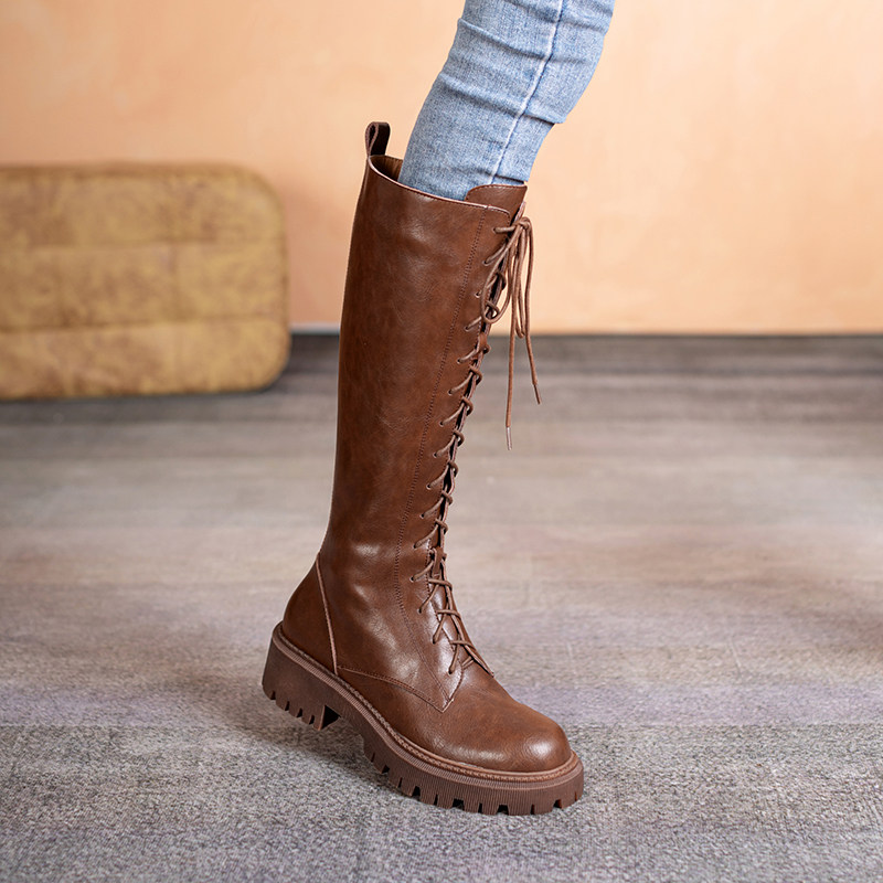 冬季新款长筒靴女加厚保暖羊毛小个子长靴显瘦厚底高筒真皮骑士靴