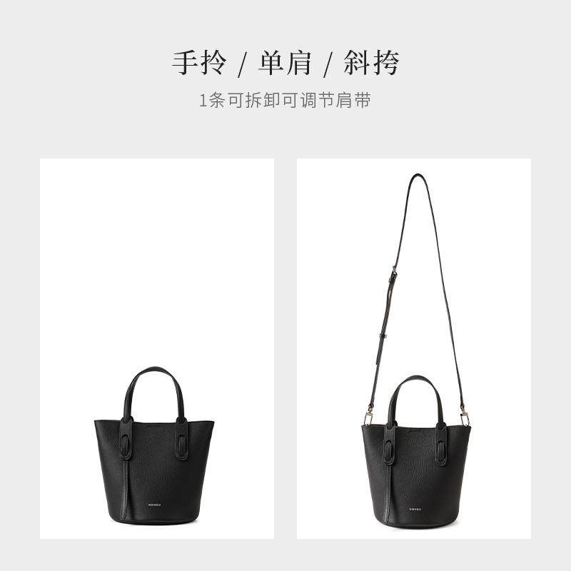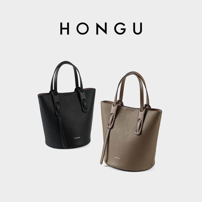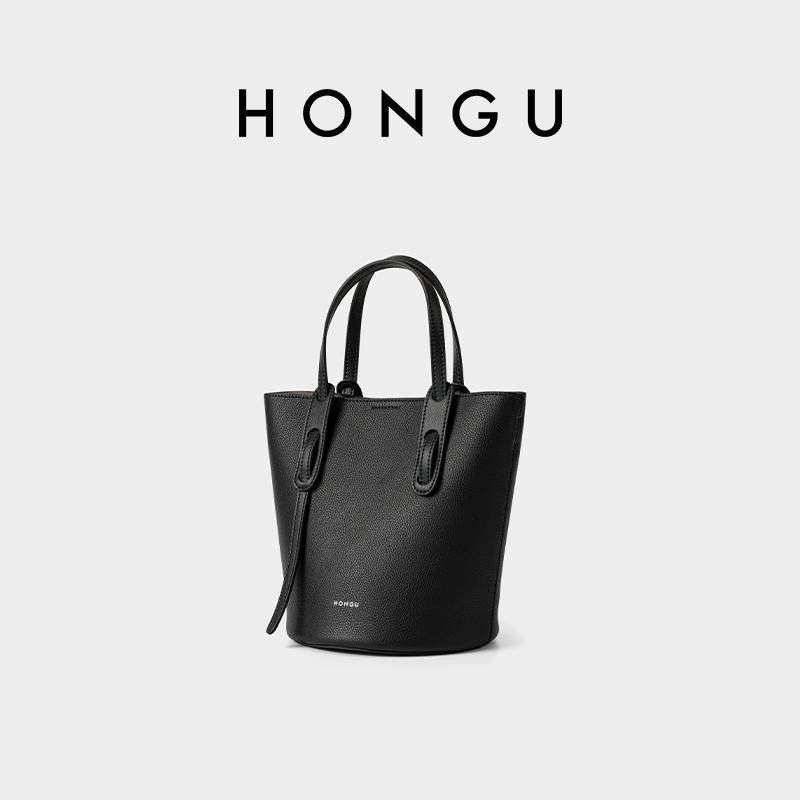 红谷女包百搭简约水桶包牛皮手提包单肩斜挎包通勤休闲H5136633