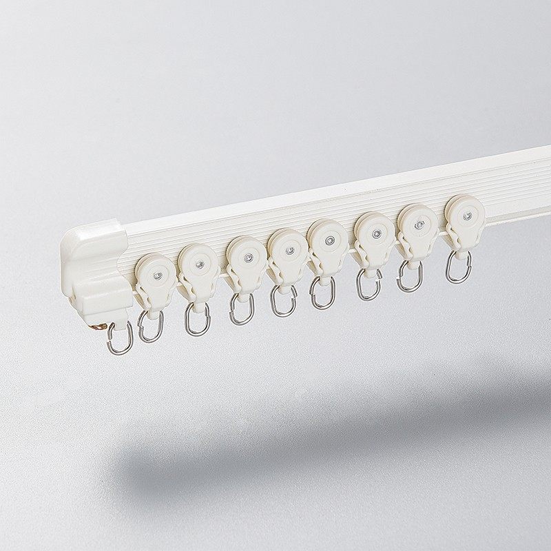 窗帘轨道滑轮可弯曲静音挂钩铝合金装家用双顶滑轨配件杆子窗帘杆