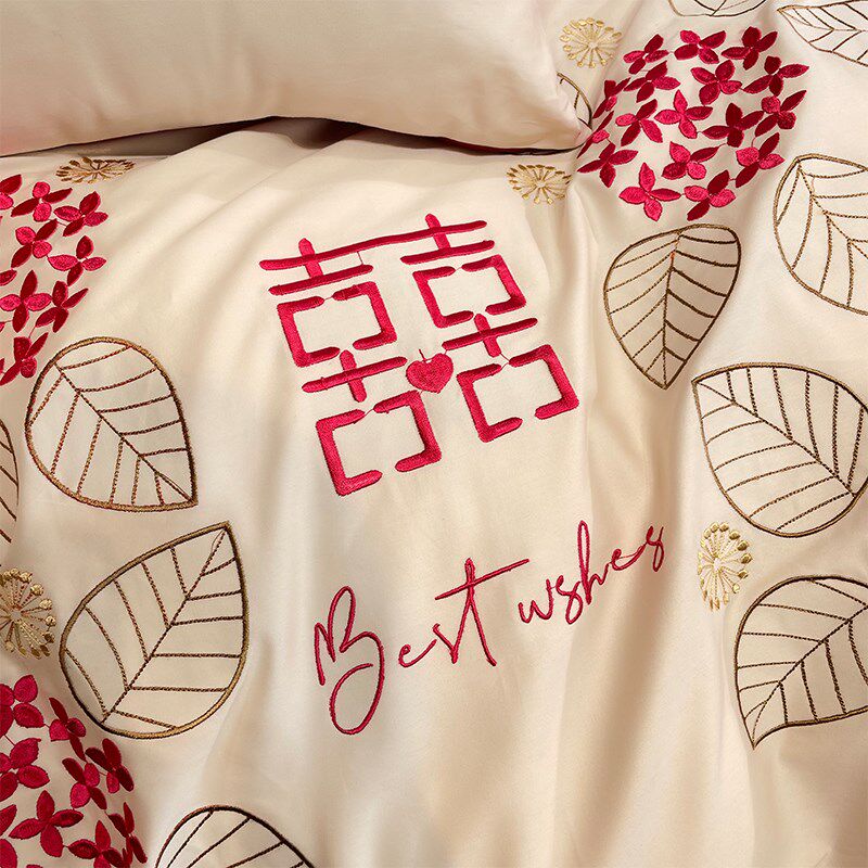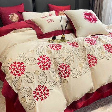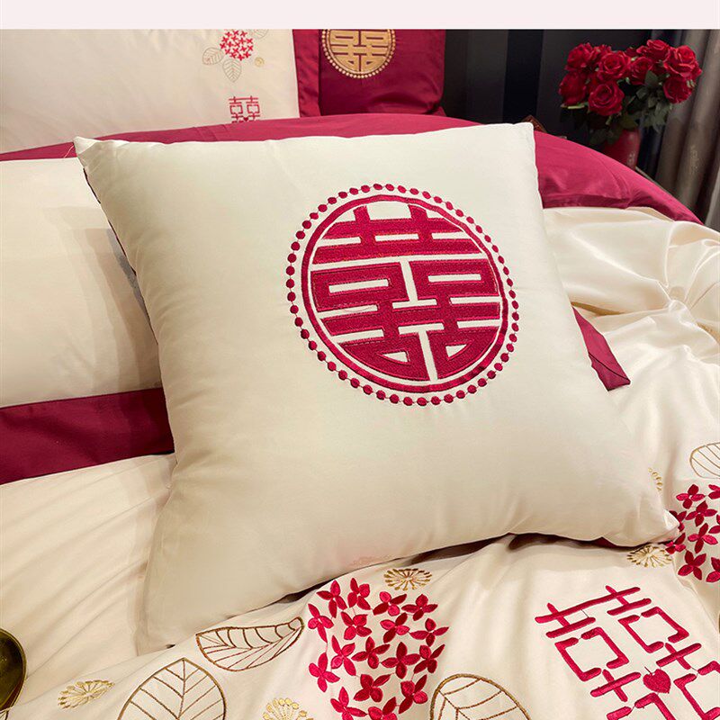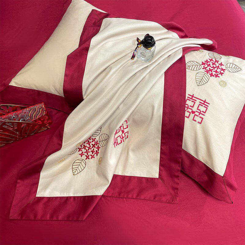 100支长绒棉四j件套结婚礼铺床上用品婚庆纯全棉床单被套抱枕六件