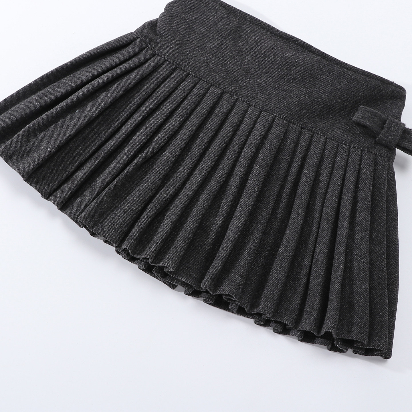 女童毛呢半身裙秋冬女孩高腰蝴蝶结灰色呢子百褶裙a字显瘦短裙
