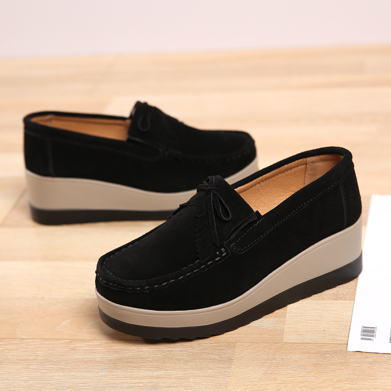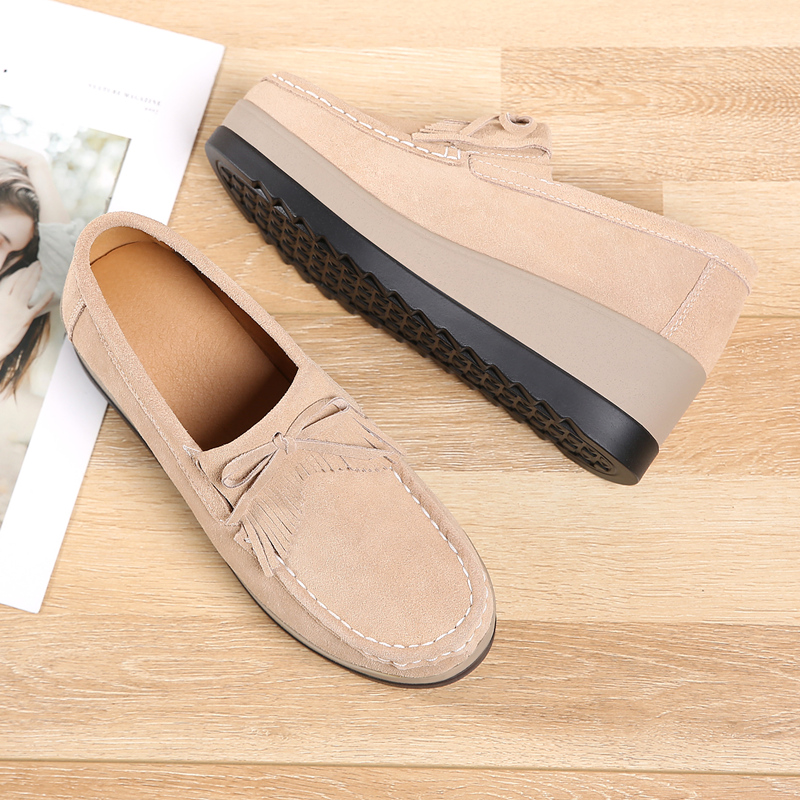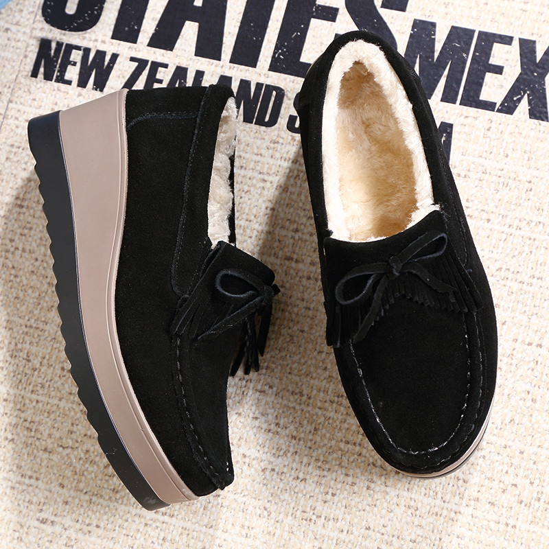 真皮加绒保暖厚底毛毛鞋豆豆棉鞋松糕加棉妈妈女单鞋2025冬季新款