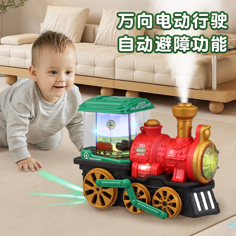 电动蒸汽火车玩具儿童万向喷雾小火车宝宝仿真模型男孩碰碰车3岁2