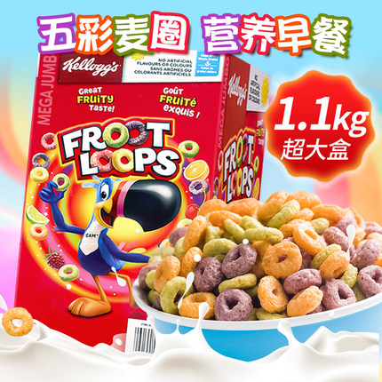 进口家乐氏麦片五彩色脆圈圈冲饮即食谷物营养早餐代餐零食玉米片