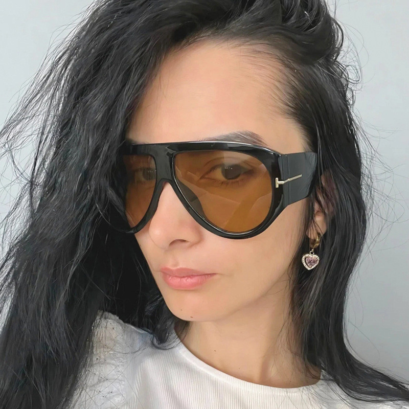 新款时尚显瘦太阳眼镜海洋片男女个性潮人T字墨镜欧美大框蛤蟆镜