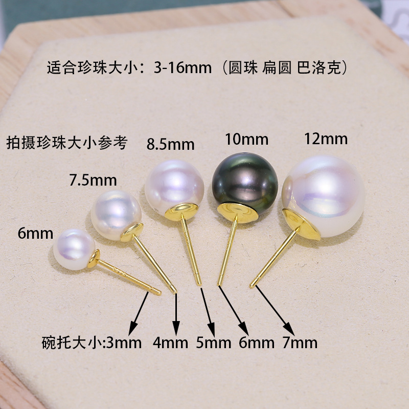 diy配件S925纯银珍珠玉石耳钉耳针空托 托盘碗托银针硅胶耳堵银托