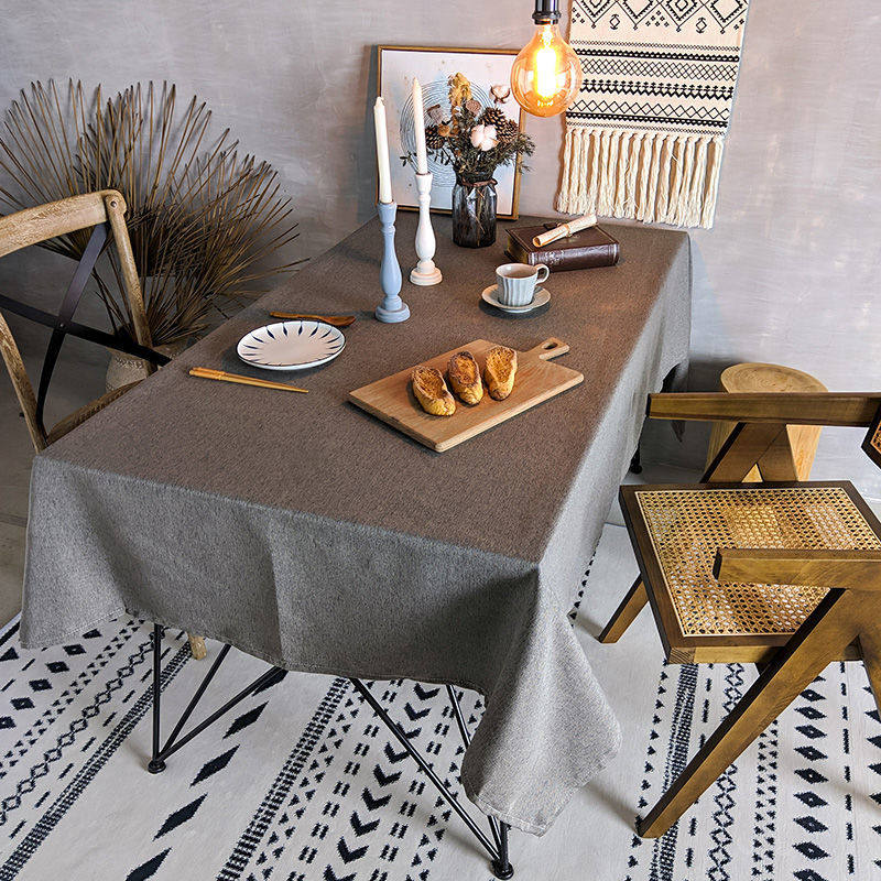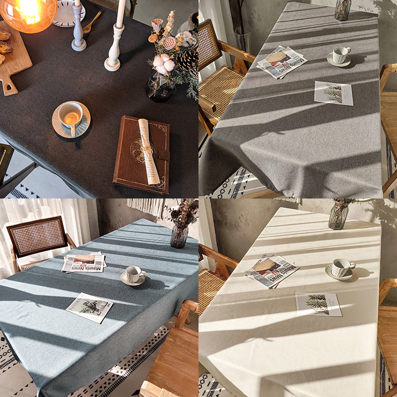 复古美式餐桌桌布纯色布艺ins棉麻亚麻素色简约北欧现代茶几台布