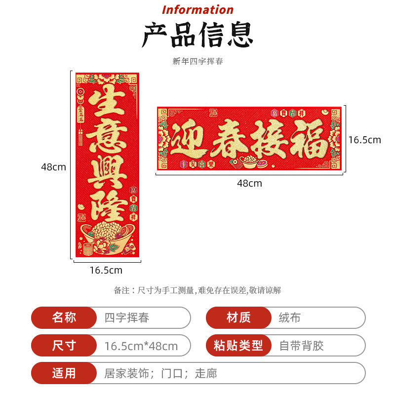 四字全绒布挥春自带胶撕开即贴